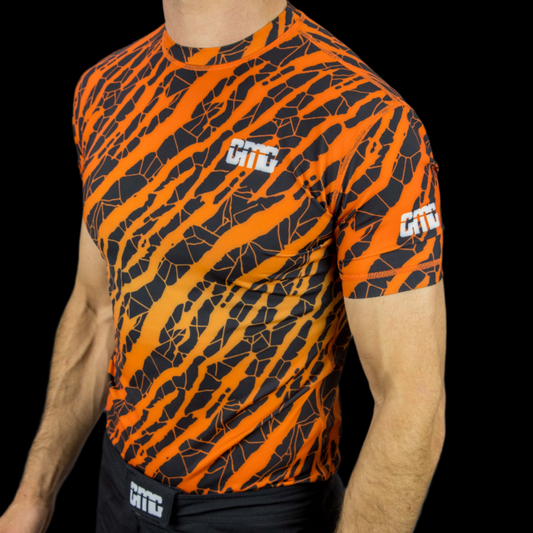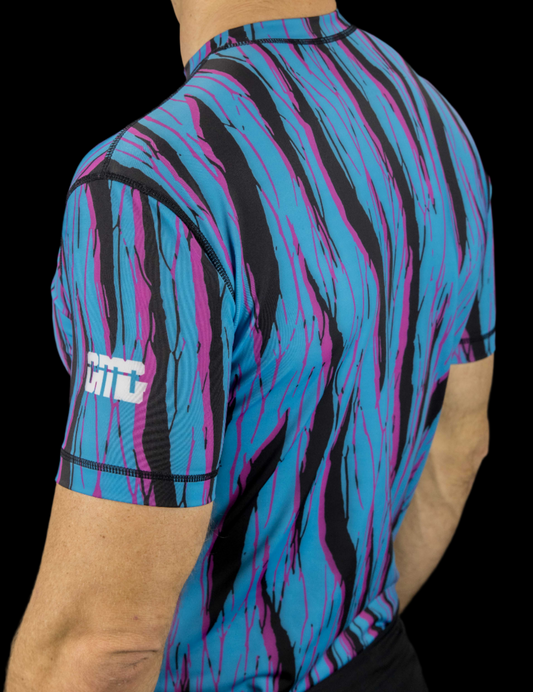 Cracked Neon No-Gi BJJ Short Sleeve Rash Guard - 100 Series Print